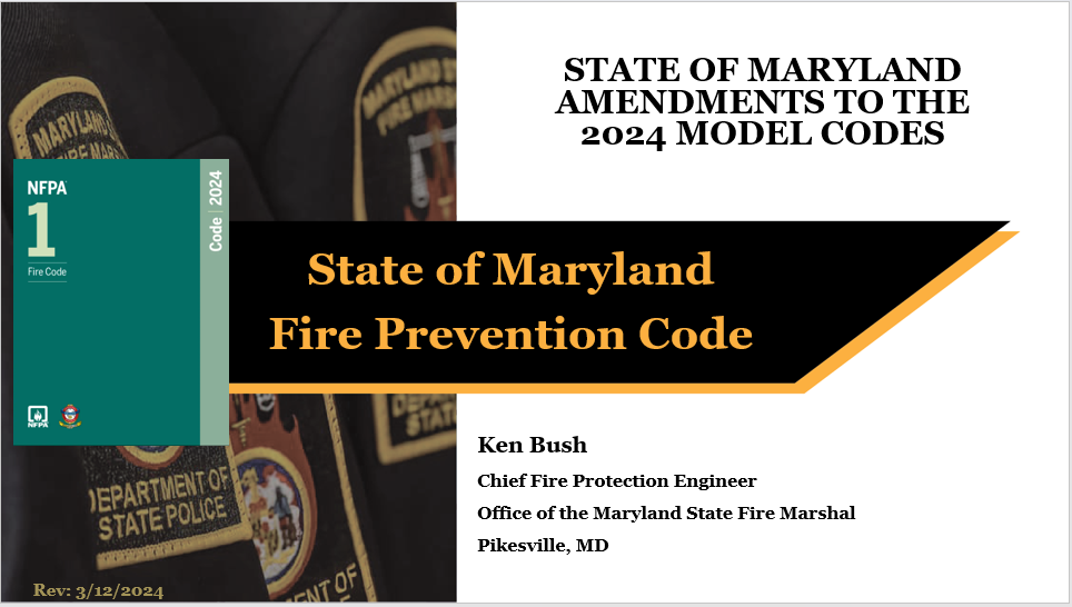 More information on the State Fire Prevention Code can be obtained by going to the Maryland State Fire Prevention Commission website.